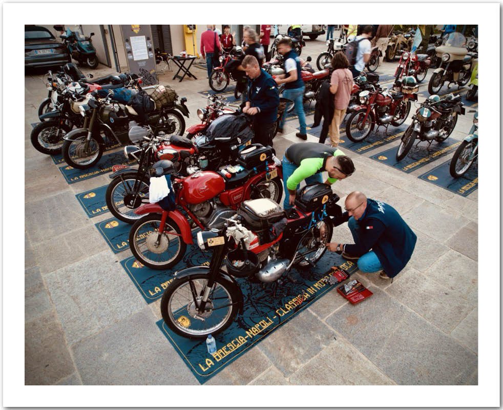 La manifestazione motociclistica “La Brescia-Napoli” giunge alla 9^Edizione: sono partiti in 5 nel 2016, hanno viaggiato 21 squadre, con 82 motociclisti e un’auto d’epoca nel 2024.